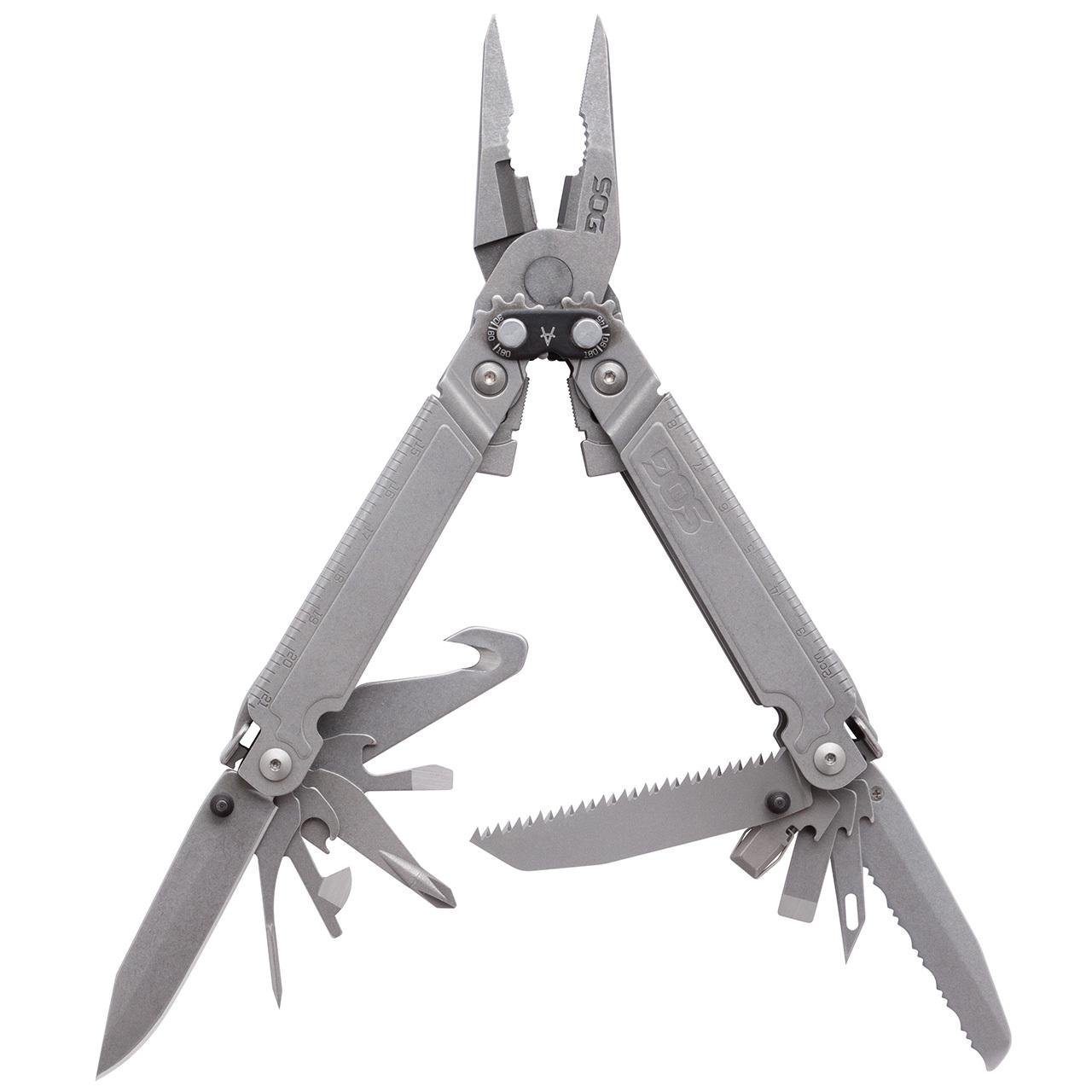 SOG PowerAccess Assist MT is the ultimate daily use multi-tool with one-handed assisted open access to frequently used knife blades and tools that lock securely in place once open. SOG’s patented gear-driven Compound Leverage mechanism features twice the cutting and gripping power of conventional pliers with a center axis magnetic hex bit driver for enhanced capability.