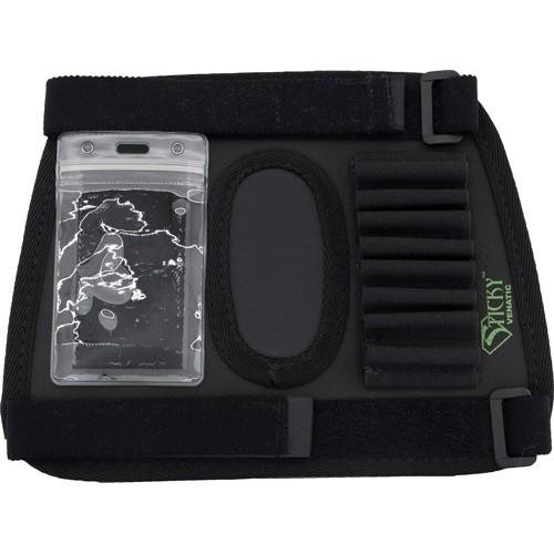 The Sticky Stock Pad/Riser is a significant improvement over other products on the market. The base and cheek pad/riser are made from our padded Sticky Material to ensure the SPR does not slip or move especially at the moment the trigger is squeezed. It is ambidextrous and uses two elastic hook/loop straps to mount to the stock. The SPR has a loop patch on either side to mount one of Sticky Holster's ammo holders or DOPE card holder and even a moral patch. The SPR can be mounted to most bolt/lever action rifles and most semi-auto and pump shotguns.